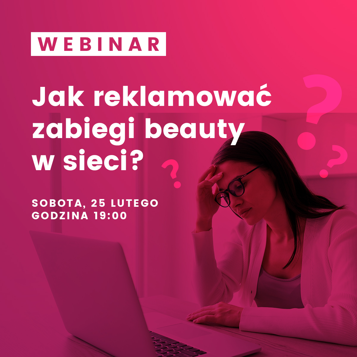 25 lutego, o godzinie 19:00 zapraszamy na webinar w całości poświęcony promocji i reklamie zabiegów kosmetycznych w sieci. Naszym gościem specjalnym będzie radca prawny, Pani Marta Sobczak specjalizująca się w szeroko rozumianym rynku usług beauty.