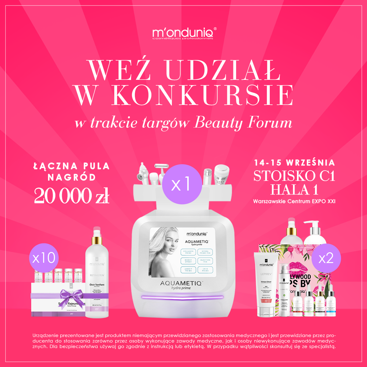 Rozwiąż quiz i zaproponuj unikatowe hasło reklamowe dla naszej marki, zdobądź 20% rabatu na ofertę targową dot. kosmetyków M'onduniq i powalcz o nagrody główne.