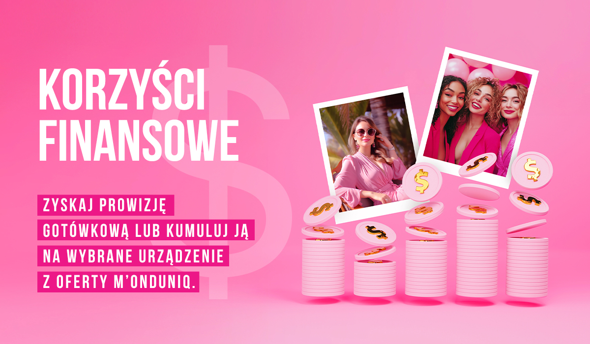 Korzyści finansowe - zyskaj prowizję gotówkową lub kumuluj ją na wybrane urządzenie z oferty M’onduniq.